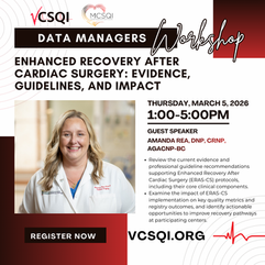 The VCSQI/MCSQI Data Managers Workshop is scheduled for Thursday, March 5, 2026, from 1:00 PM to 5:00 PM via Zoom and is a unique opportunity to strengthen your skills and connect with peers across Virginia and Maryland.